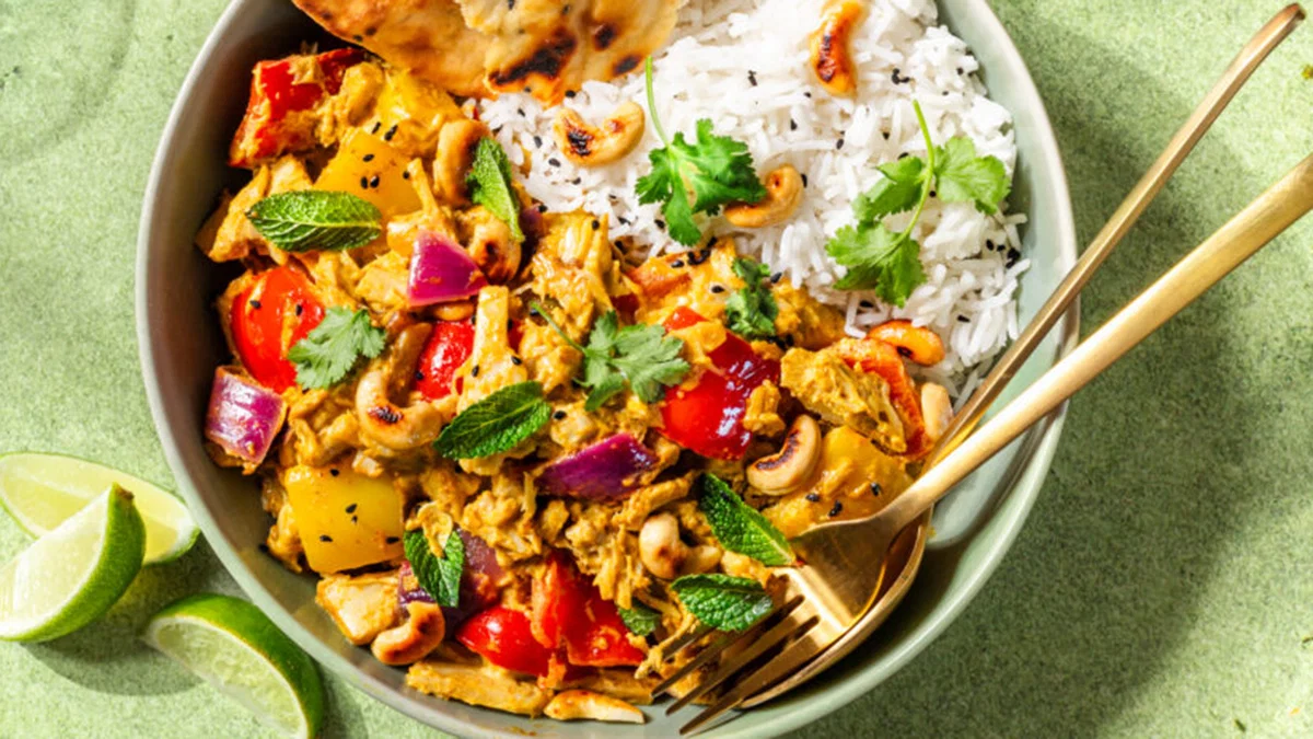 Jackfruit als bite in deze Indiaase, vegetarische butter chicken